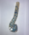 • Glass bird with yellow and purple body, black beak, transparent body, spread wings, closed eyes, and decorated with small colorful dots.Clear glass pipe with yellow, blue, and purple swirl design etched into it. Small, round base and mouthpiece. Well made and of good quality.